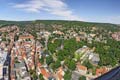 Ein relativ junges Wahrzeichen der Stadt Jena ist der JenTower, von dessen 128 Meter hohem Aussichtsturm man einen fantastischen Ausblick auf Jena und Umgebung hat.